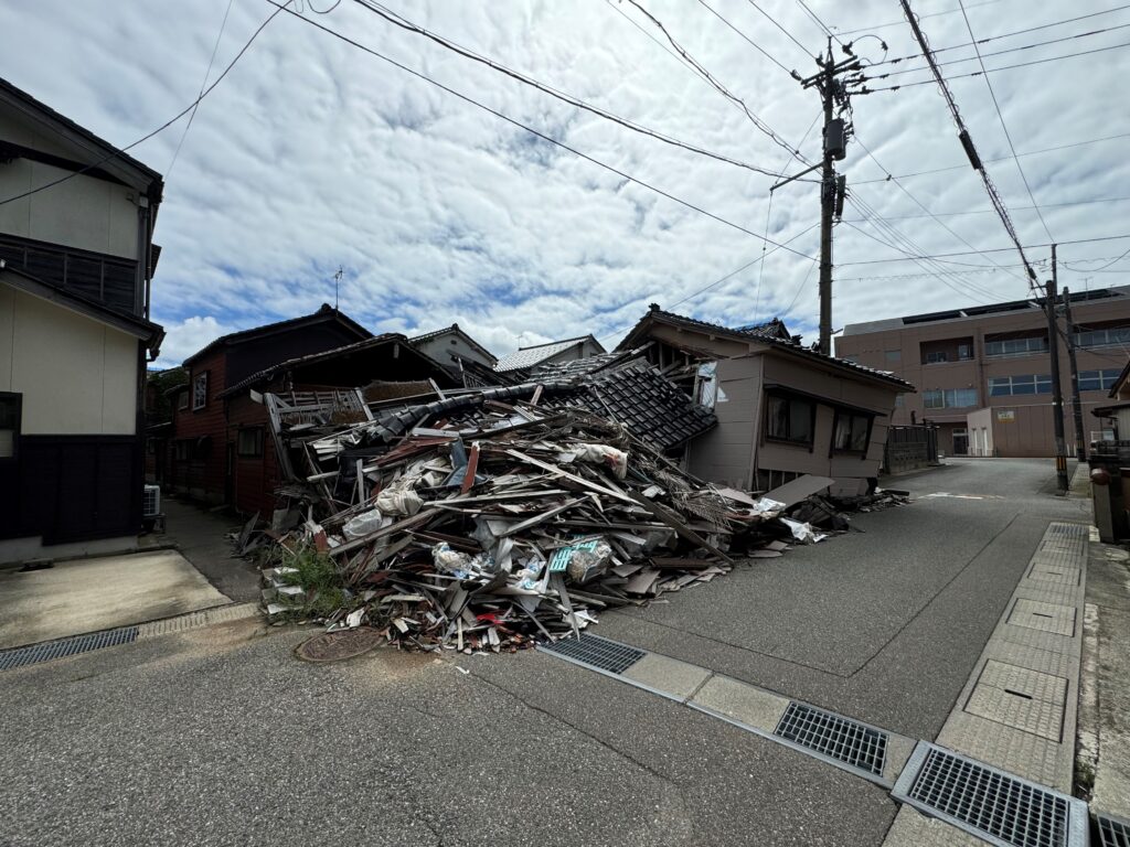 被災地を盛り上げていこうと活動をされている現地の方とお話しをする機会をいただきましたが、2007年の能登地震の後、耐震補強をした住宅の多くも倒壊してしまったこと、復旧復興や行政の対応の遅れにより、年配の方など「もう放っておいてほしいと」ふさぎ込んでしまっている方たちが大勢おられるとのことで、この状況を皆さんに見てほしいと言われていました。