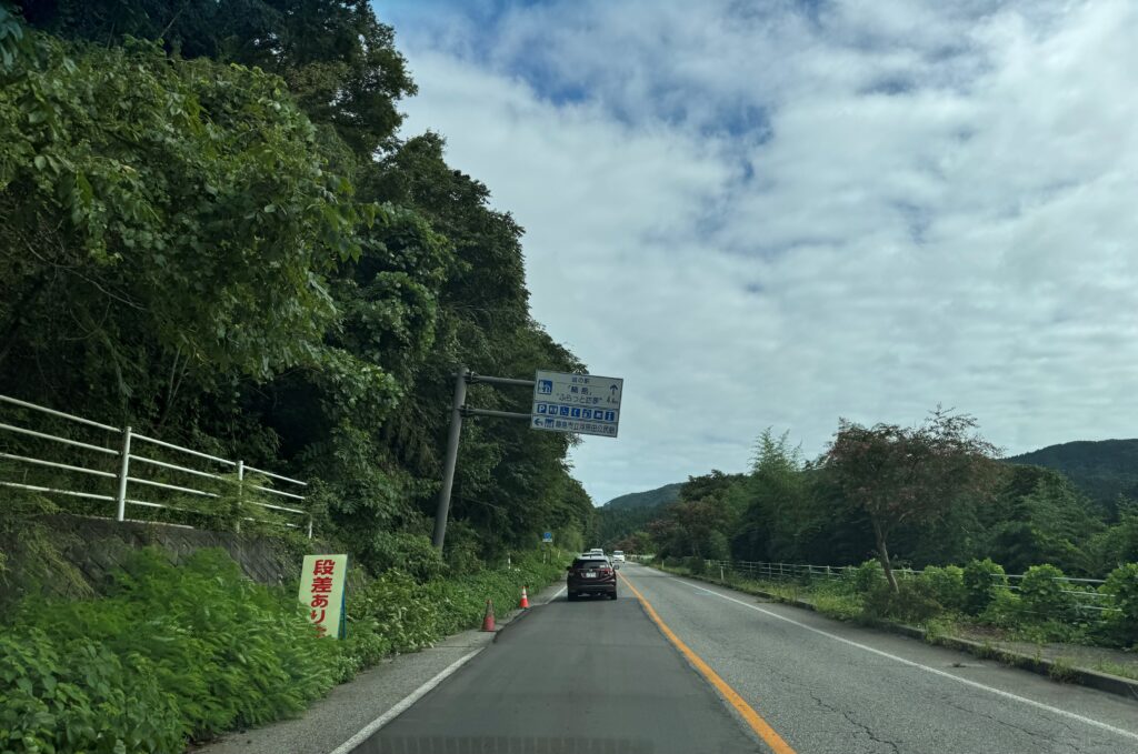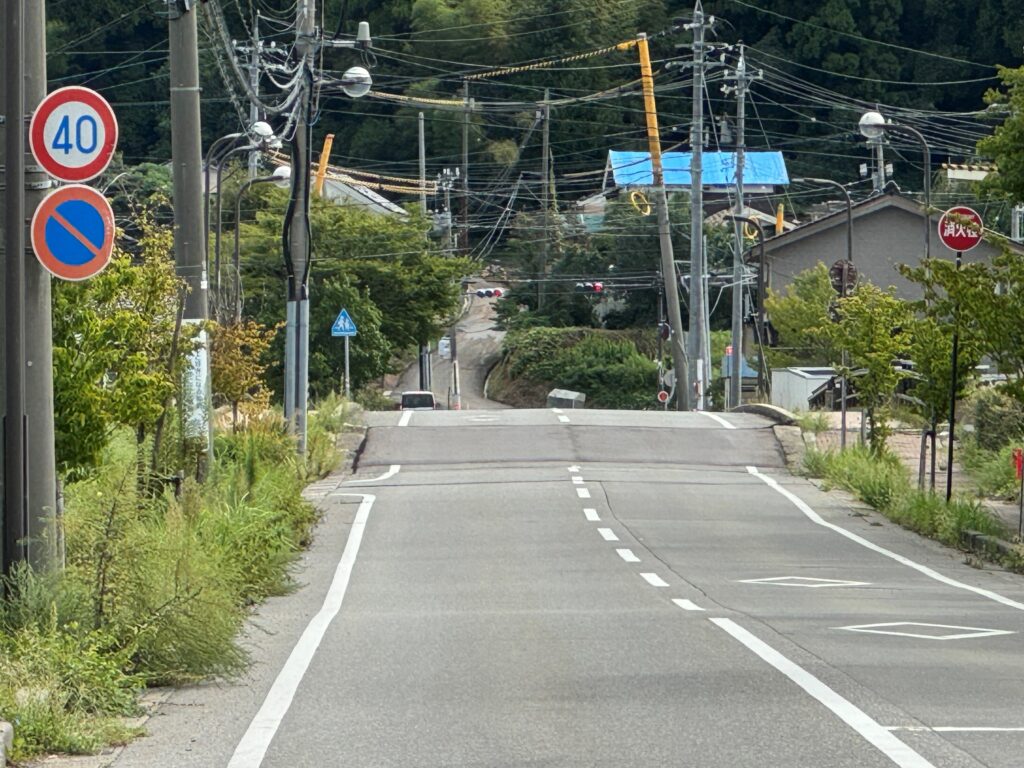 実際に向かってみて金沢まではこれまで通り全く変わらないため、震災があったとは思えないと感じましたが、能越道を北上し七尾を超えたあたりから、地盤の変化で、まるでアトラクションかと思えるようなアップダウンが続き、またいたるところで道路が崩落し、迂回のため急カーブの連続になっていたりして、復旧にあたり物資搬入のための応急処置で工事が急がれたことがうかがえましたが傾いた看板などはそのままの状態でした。