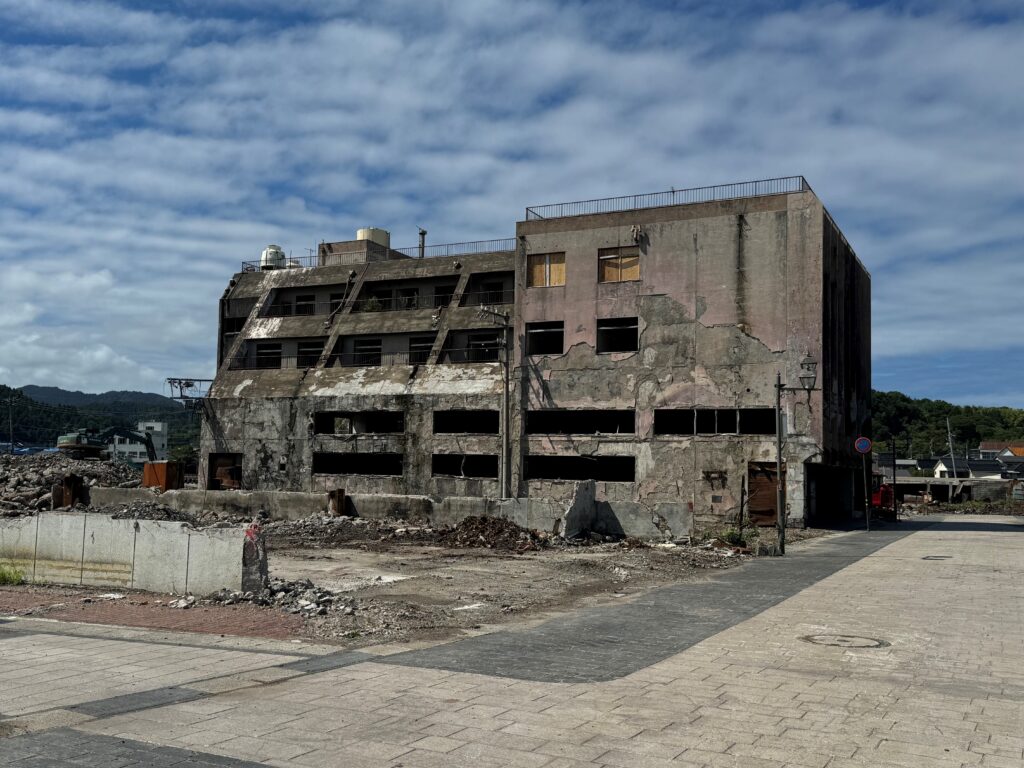 大人の私でも、この町に入り衝撃を受けているのに復興が進んでいるならともかく損害がむき出しのままのこの光景を子供達が毎日横目に見ながら学校に通学していると思うと心が締め付けられる思いでした。