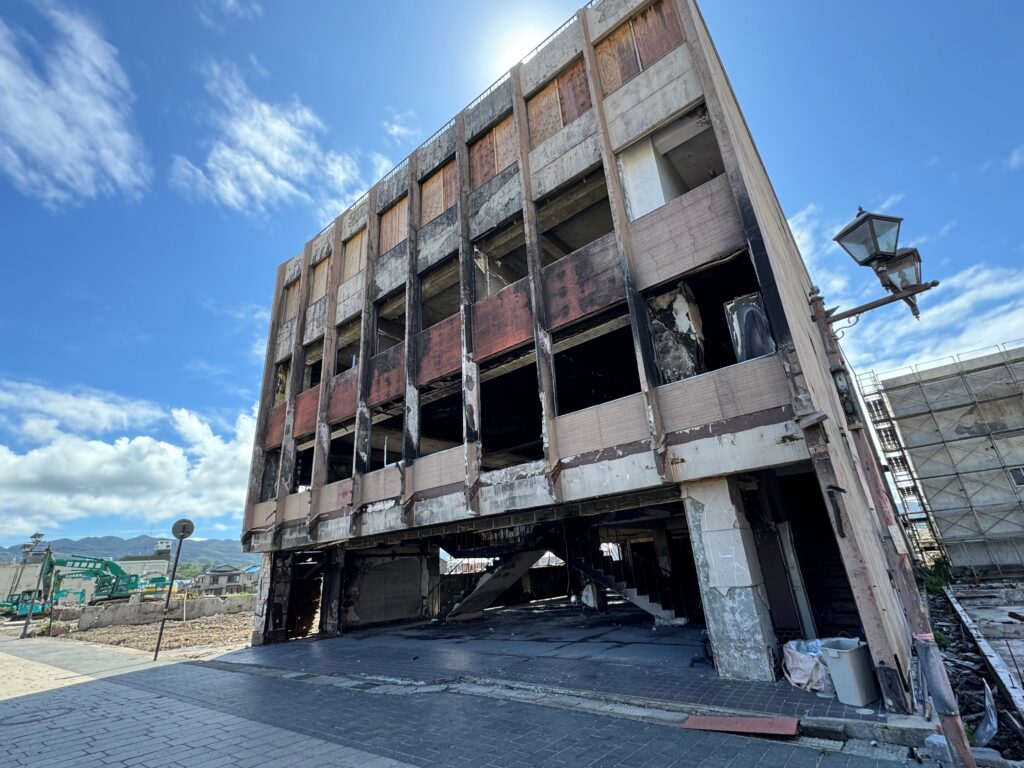 【震災の象徴になってしまったビルの様子】