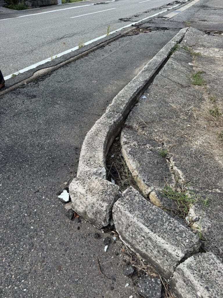少し山側になる門前町でも道路の被害がそのままでした。